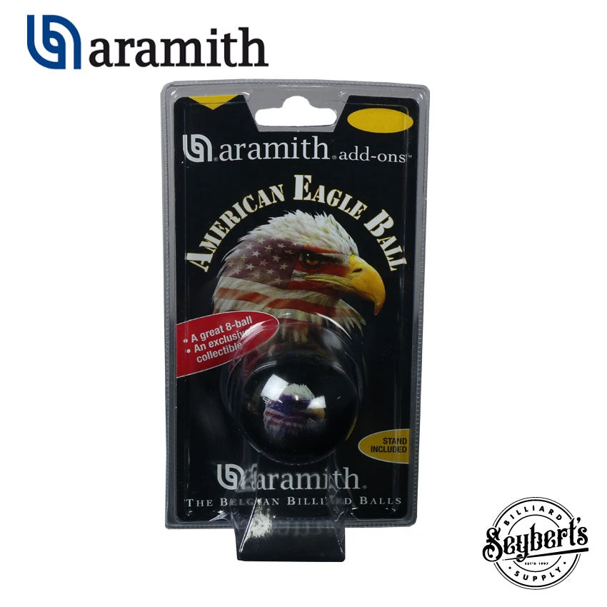Aramith Eagle Ball. This ball is an exclusive collectible billiard ball. The ball is standard weight and 2 1/4″ like all quality Aramith balls.
