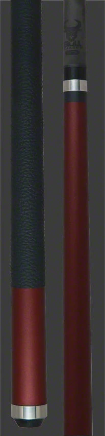 Bull Carbon LD13 Pool Cue. The LD13 has a burgundy stained maple forearm and a textured ultra-leather wrap  that extends to the  butt sleeve. Completing this cue is a Bull Carbon Fiber Shaft.