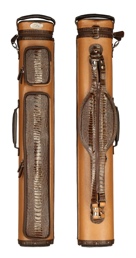 Castillo Honey Brown Leather With Chocolate Brown Ostrich Leg Accent 3×5 Hard Leather Pool Cue Case – CLG35HBRCBOS
