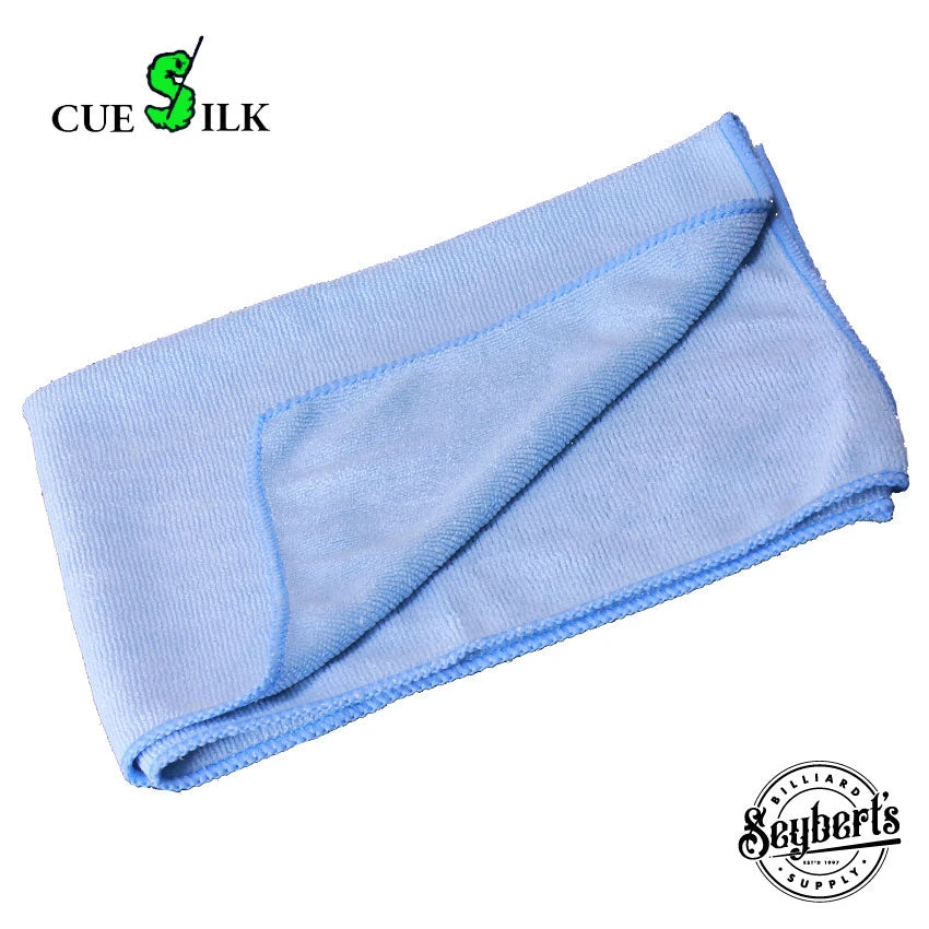 Cue Silk micro fiber pool table cleaning towel. This towel measures 16″ x 16″.