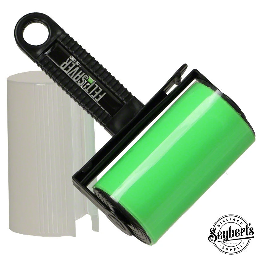 The Felt Saver by Cue Candy is a reusable sticky roller designed to clean your pool table felt / cloth along with many items around the house. This roller will pull the chalk out of your table along with removing any dust or pet hair the the table may have collected. Can also be used on your gameroom furniture  or any fabric surface that you would use a standard lint roller on.  To clean the Felt Saver you just rinse it off in water and it is ready for the next use. Roller is approx 4 inches with a 4 inch handle and comes with slip on cover to keep roller clean when stored.