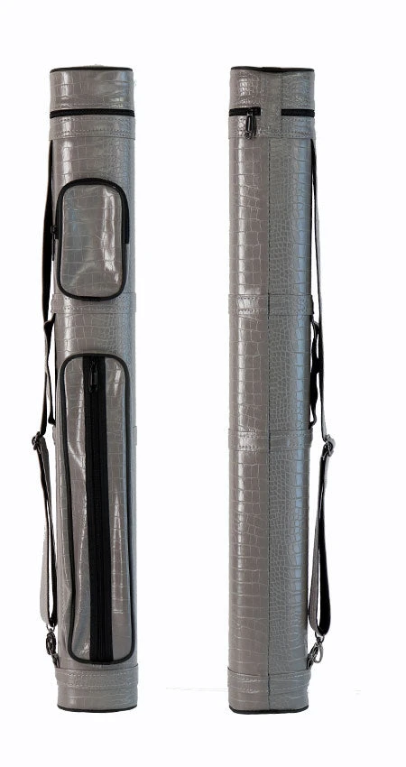 Introducing our Exotic Leatherette Hard Polyform case comes standard with as a 2 butt, 2 shaft design constructed of a Exotic Gray leatherette material. These Exotic cases all have a large jump cue pocket with front zipper access and medium accessory pocket. These Exotic cases also feature heavy-duty bottoms, as well as a padded handle and matching vinyl carrying strap.