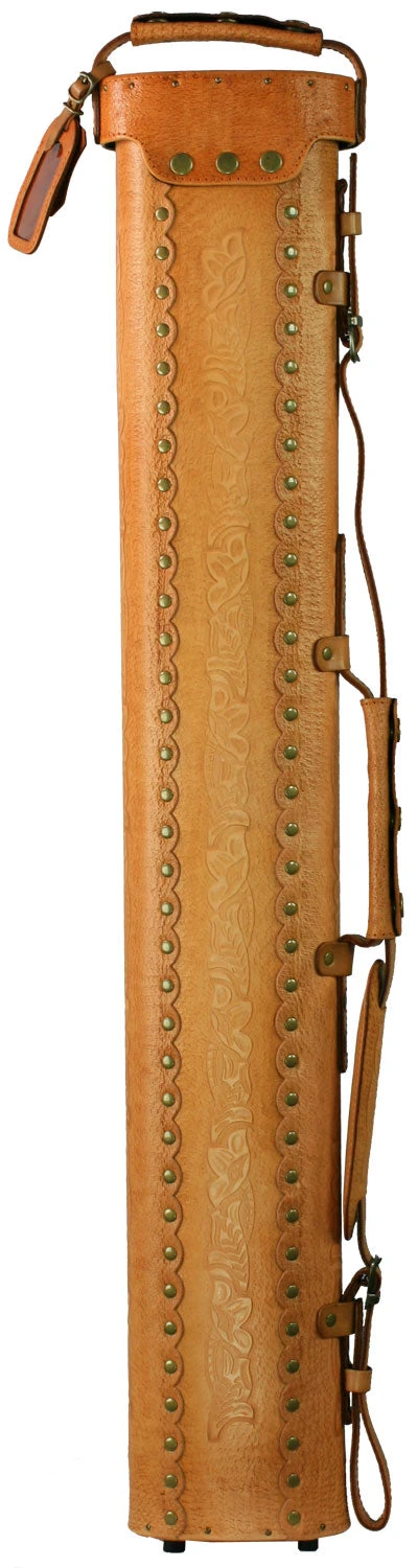 Instroke 3×5 tan saddle B tooled leather pool cue case.