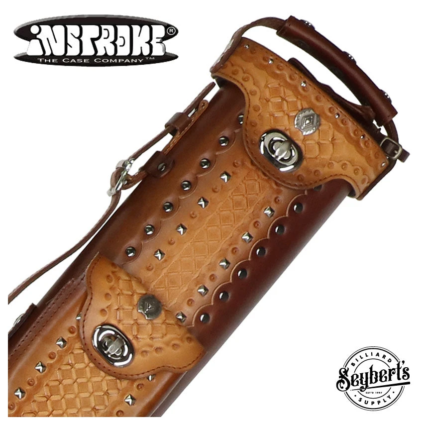 Instroke 2×4 brown southwest tooled leather pool cue case.