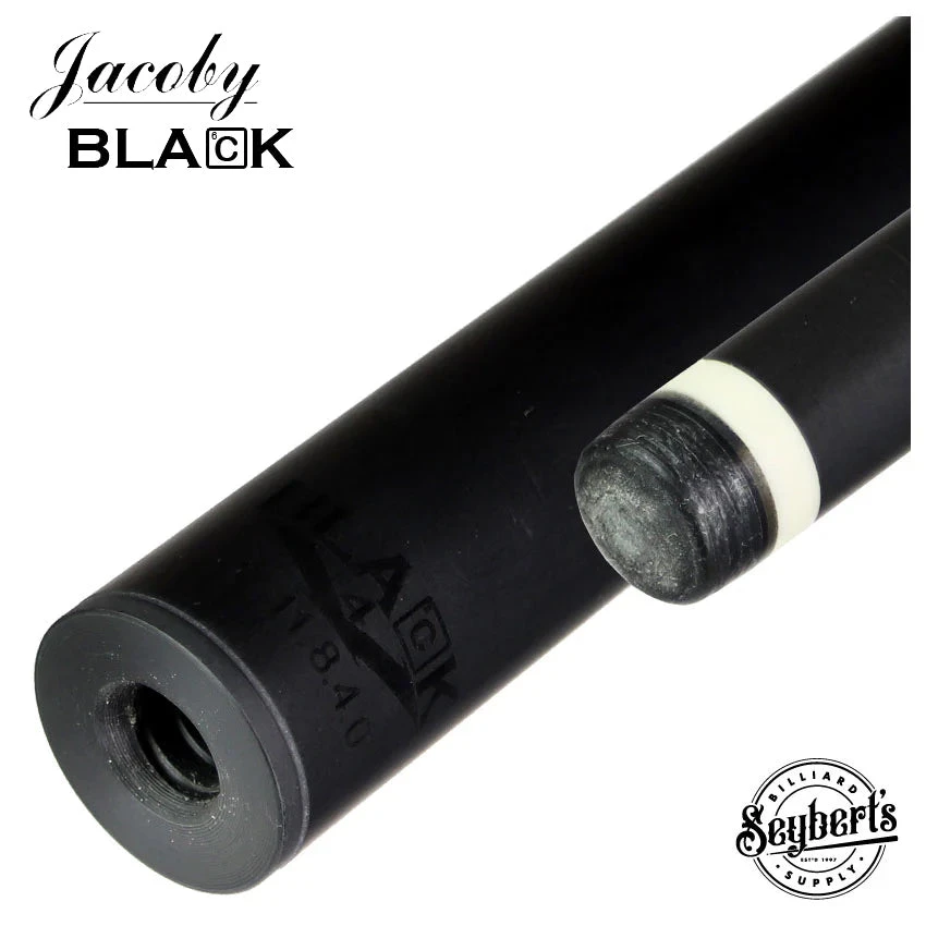 Experience a revolutionary blend of comfort, power, accuracy, and longevity with the Jacoby Black V4.0 Carbon Fiber Cue Shaft. Delivering the ideal balance, this 3/8 x 10 Thread shaft is machined with a specially designed ferrule and thinner walls near the end for minimal tip mass and cue-ball squirt. Featuring a pro taper and a Kamui Clear Black Tip you’re sure to have the soft hit you’ve been dreaming of.Â