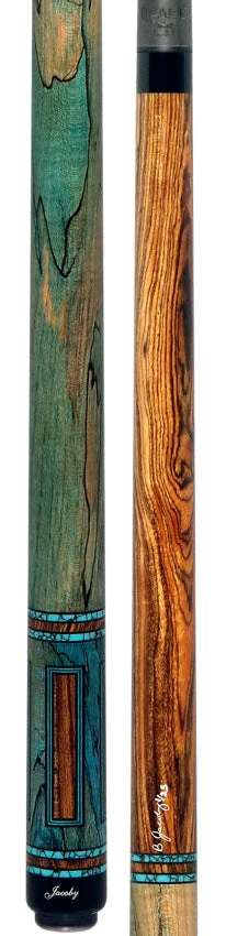 Upgrade your billiards game with the Jacoby Bocote and Spalted Maple Custom Pool Cue. The striking design, featuring Bocote and Spalted Maple woods, exudes elegance and sophistication. The wrapless Spalted Maple handle provides a comfortable grip, while the Jacoby V4 Carbon Fiber Shaft ensures precision and power in every shot. Play like a pro with this high-performance cue.