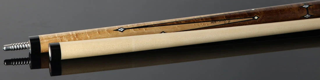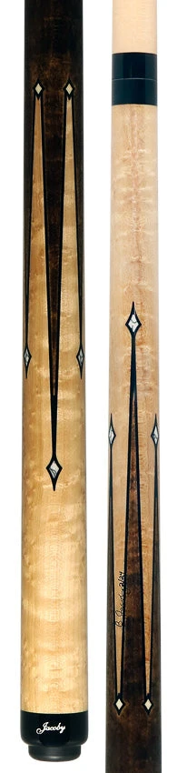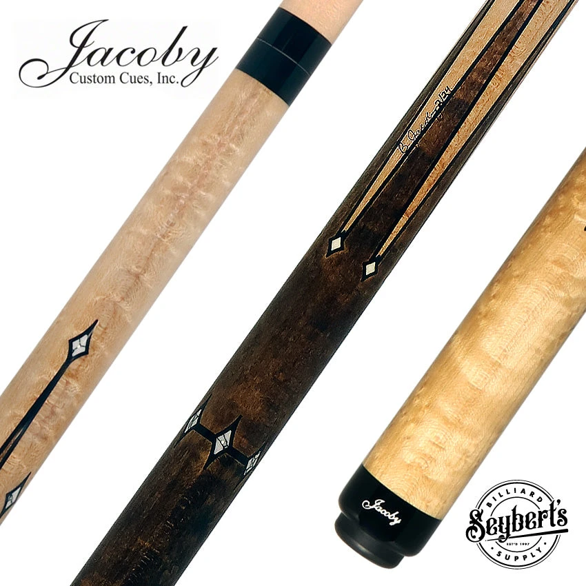The Jacoby Custom Brown-Stained Birdseye Maple with Buffalo Turquoise Play Cue offers a unique and elegant design, featuring a light stained Birdseye Maple forearm and buttsleeve with dark stained Birdseye Maple points accented with Buffalo Turquoise diamonds. With a 29″ Jacoby Pro Maple shaft, 12.75mm diameter, and Tiger Everest tip, this cue provides precision and control. The Radial joint adds stability, making it a valuable addition to any player’s collection.