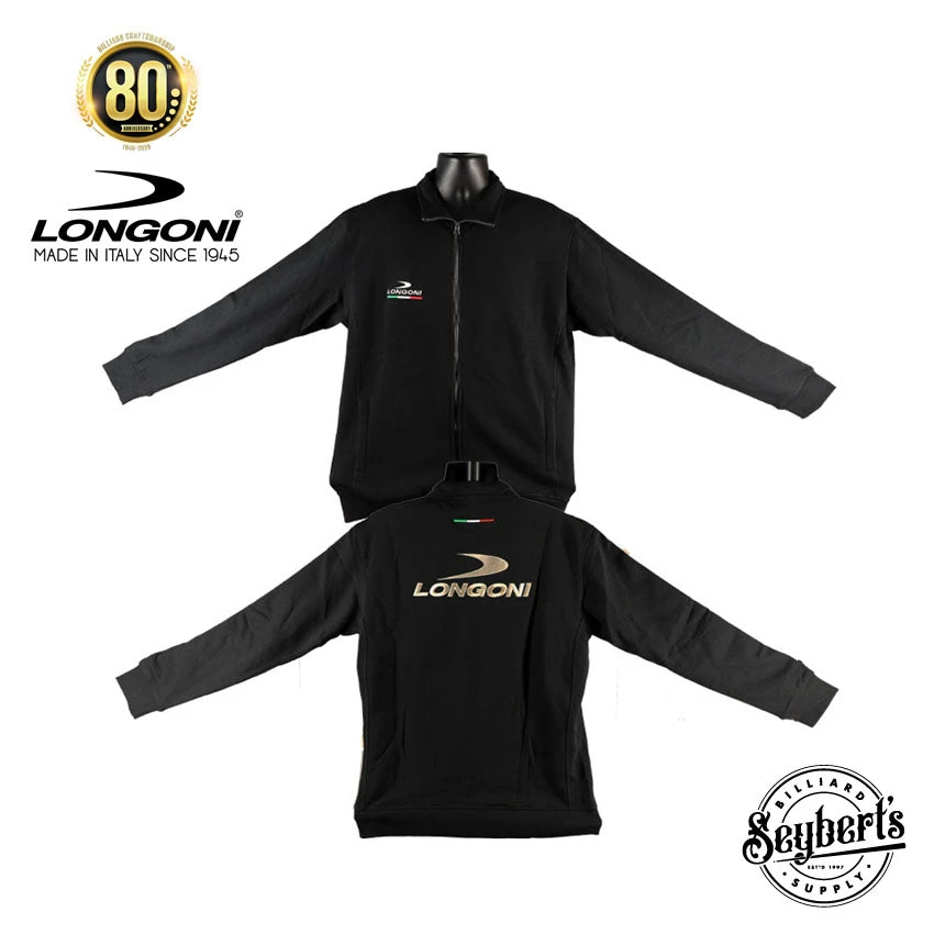 Stay warm and stylish with this Longoni Black Zip-Up Sweatshirt! It features two roomy pockets and an elegant brass zipper, while Longoni embroidery and tricolor detailing give it an extra special touch. Exceptionally comfortable yet durable, this sweatshirt is ideal for a wide range of occasions. Experience the perfect mix of luxury and practicality!