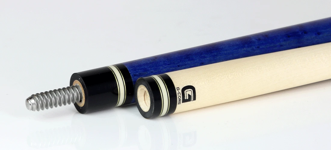 McDermott Pool Cue model G201 has a Birdseye Maple forearm and sleeve with Pacific Blue European organic stain and German brass rings. The McDermott G201 comes standard with the G-Core shaft.