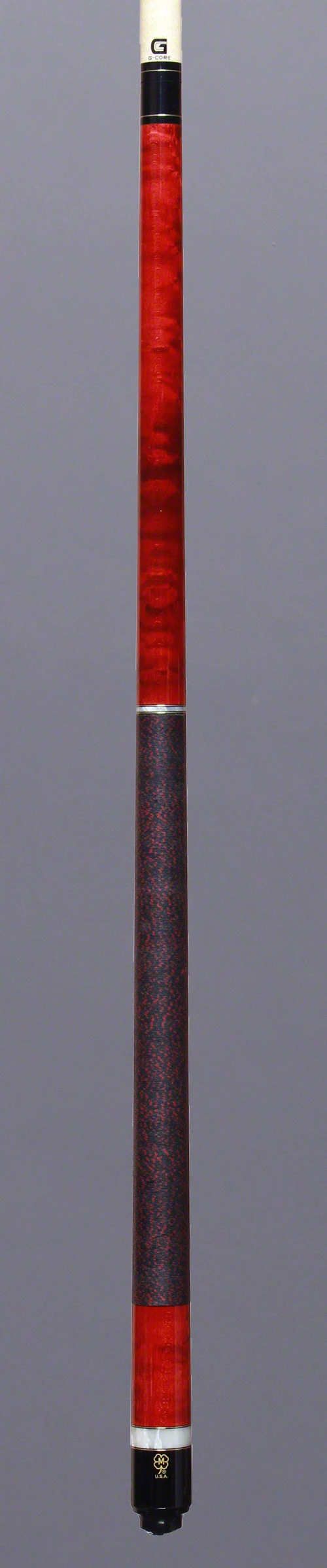 McDermott Pool Cue model G208 has a Birdseye Maple forearm and sleeve with Colorado Red European organic stain and German brass with Italian pearl rings. The McDermott G208 comes standard with the G-Core shaft.