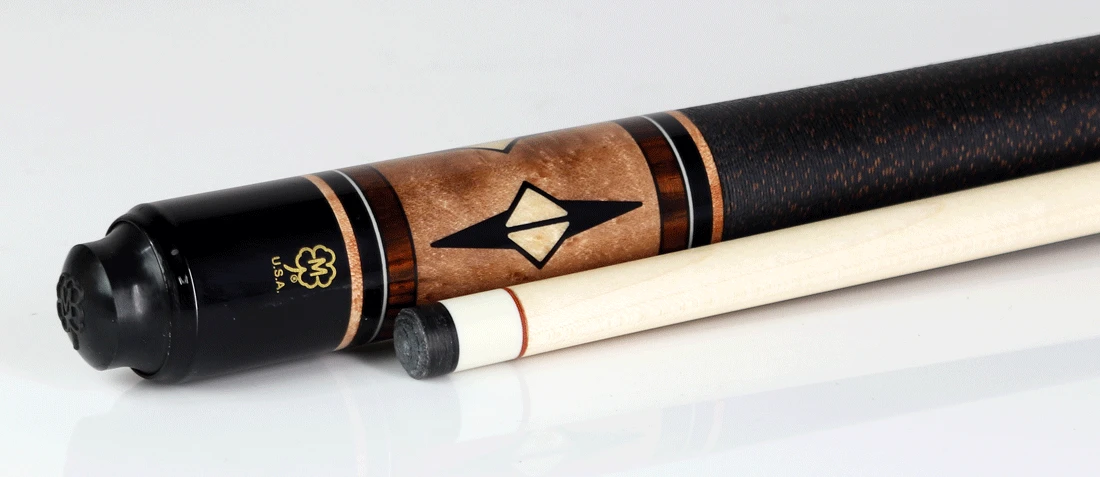 McDermott Pool Cue model G402 has a Birdseye Maple forearm and sleeve with natural walnut and American cherry stains. The forearm and butt sleeve have 4 Birdseye Maple points with matching sleeve inlays and Rosewood and Maple rings. The McDermott G402 comes standard with the G-Core shaft.
