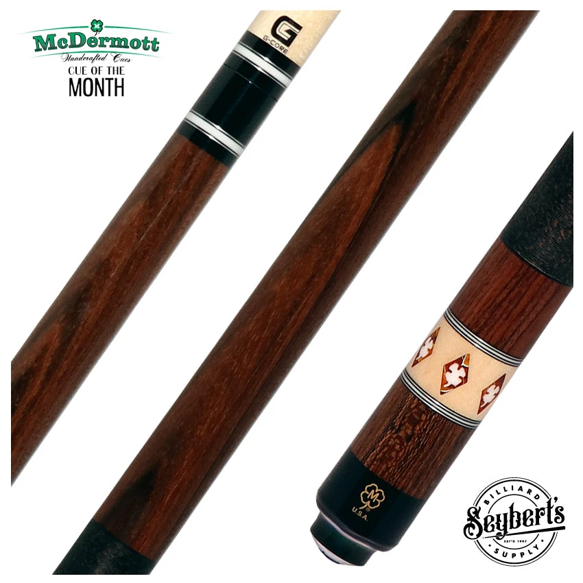 Take on every game with the McDermott Parda Cue of the Month! Custom Parda forearm and sleeve, amber “Metal-pool” diamonds, and white urethane clover inlays add a touch of risk-taking to your game. The G-Core shaft and Irish linen wrap provide maximum performance and a bold edge.