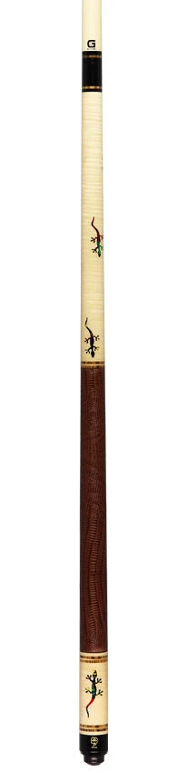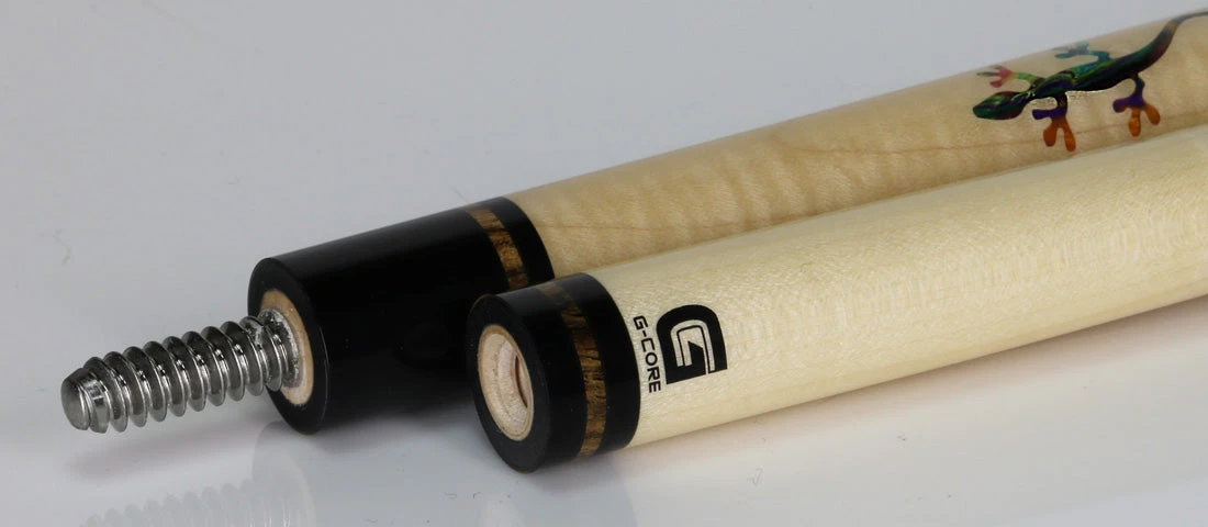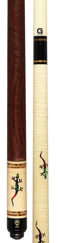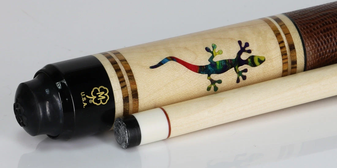 Introducing the McDermott G516C March 2024 COTM with G-Core Shaft. This cue features a stunning curly maple design with 7 customized ‘Hummingbird’ ShokRes Chameleon inlays, complemented by beautiful bocote & maple rings. The comfortable brown lizard-embossed leather wrap adds both style and functionality. Experience high-performance with the 3/8″-10 joint and G-Core shaft.