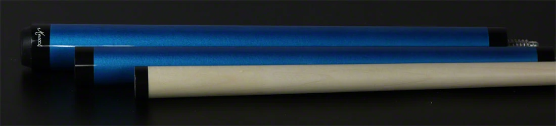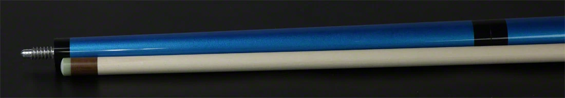 Meucci Pogo Blue Jump Cue. This cue has an all Blue Maple butt with a 3/8 x 10 thread joint. The shaft is a solid Maple 13mm shaft with brown phenolic ferrule and tip.