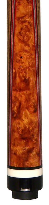 Experience sophistication and craftsmanship like never before with this exquisite Pat Diveney DC1200 Bocote Butterfly With Kielwood 12.50mm shaft custom pool cue. Curly Maple forearm and 4 highly figured Bocote points are elegantly outfitted with a multicolored veneered butterfly butt sleeve showcasing a breathtaking piece of highly figured burl wood. The signature rings and custom Torrified shaft add a luxurious finishing touch. A cue fit for the most discerning billiard players.