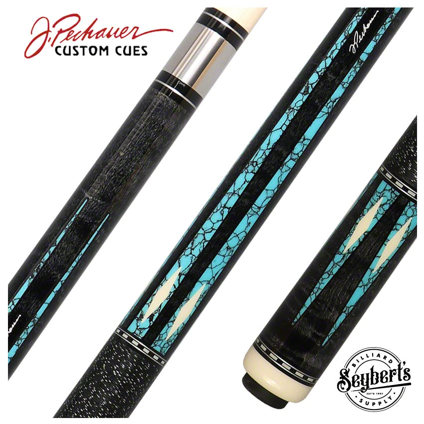 The Pechauer Pro Series P19C-TQ Cue offers serious pool players a stylish accessory to up their game. Featuring a sturdy ebony-stained maple construction, this cue is decked out with 6 stunning Turquoise points and accented with gleaming silver and black rings for a unique, simple look. Its signature J. Pechauer on the forearm will make a statement as you take your shot.