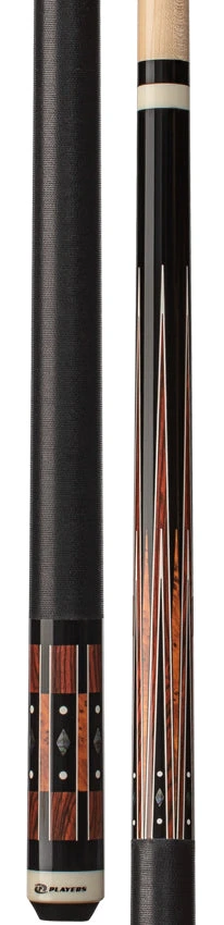 Take your pool game to the next level with the Players Graphic Series Pool Cue. The midnight black design, featuring cocobolo, Thuya burlwood, and mother of pearl overlays, exudes luxury and sophistication. The 12.75mm shaft is made with high quality North American maple, while the Le pro leather tip and high impact ferrule ensure precise shots. With a solid black Irish linen wrap and white implex accents, this cue is as elegant as it is functional. Plus, the lifetime warranty guarantees lasting quality. Elevate your game with the ultimate player’s cue.