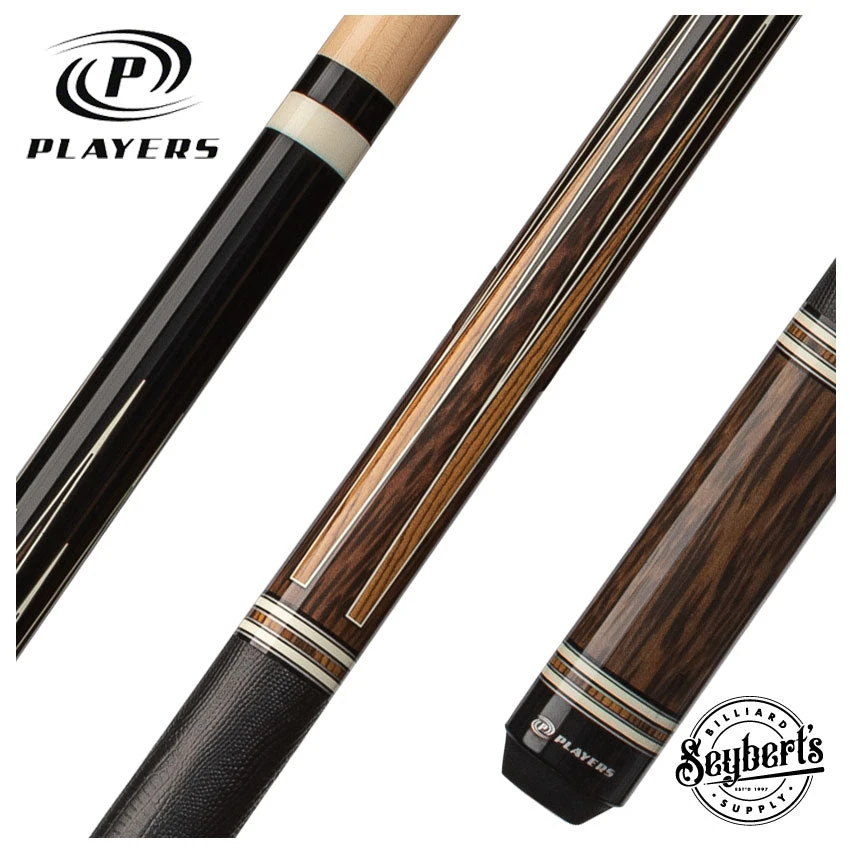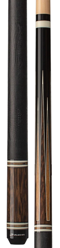 Indulge in the sophisticated, luxurious design of the Players Exotic Series Black Palm and Bocote Graphic Pool Cue. Crafted with a glossy black forearm and black palm graphic buttsleeve featuring bocote and black palm graphic points. The 13mm North American Grade A Hard Rock Maple shaft offers a 15″ pro taper for enhanced control and the high quality French Le Pro Leather tip delivers precise shots. With a black lizard embossed wrap, white implex joint collar, and black implex butt cap, this cue exudes exclusive style. Plus, with a lifetime warranty that includes warping, you can elevate your pool game with confidence.