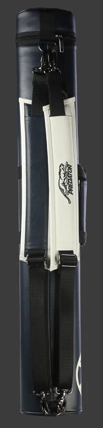 Predator Roadline 2×4 Blue/White hard pool cue case. This case exterior is constructed of extremely durable ultra-vinyl. Interior has padded sleeves to protect your cues. 1 large front zipper pocket(21″ x 5″) with an interior that has 2 jump cue butt elastic loops along with breathable mesh (4″ x 3.5″) pocket. Case features embossed predator cat zipper pull, side handles, adjustable back shoulder strap, embroidered Predator logo on shoulder strap.