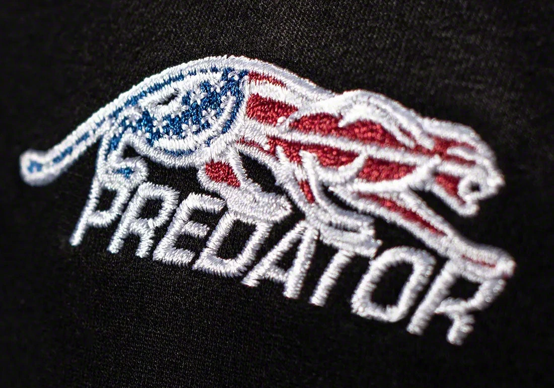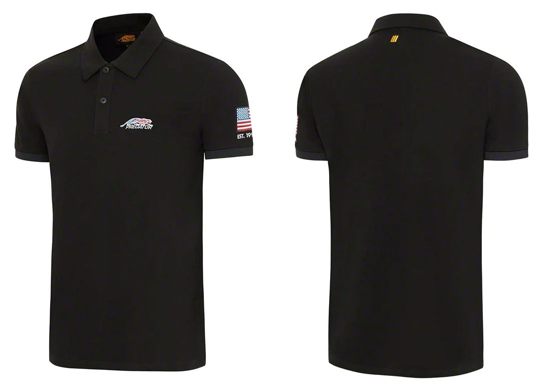 Our Predator Black W/ USA Cat Polo is made of a breathable cotton/spandex blend for maximum comfortability. This polo comes with a nice embroidered USA Predator cat logo on the front as well as a USA flag logo embroidered on the left sleeve.