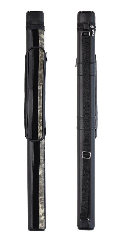 Pro Series Designer 1 butt 1 shaft pool cue case is all black with a black suede and sliver stripe going down the front. Case features include shoulder strap, zip closure and long accessories pocket.