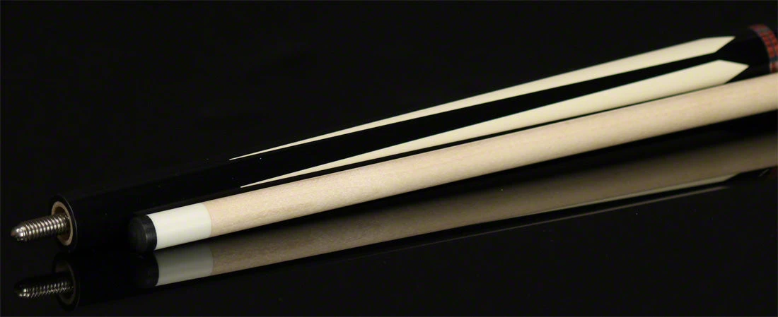 PureX Technology HXT96 Pool Cue. This cue has a Midnight black forearm with white point design.  The butt sleeve  is all white. Completing cue is Cocobolo and silver ring work and a solid black Irish linen wrap.