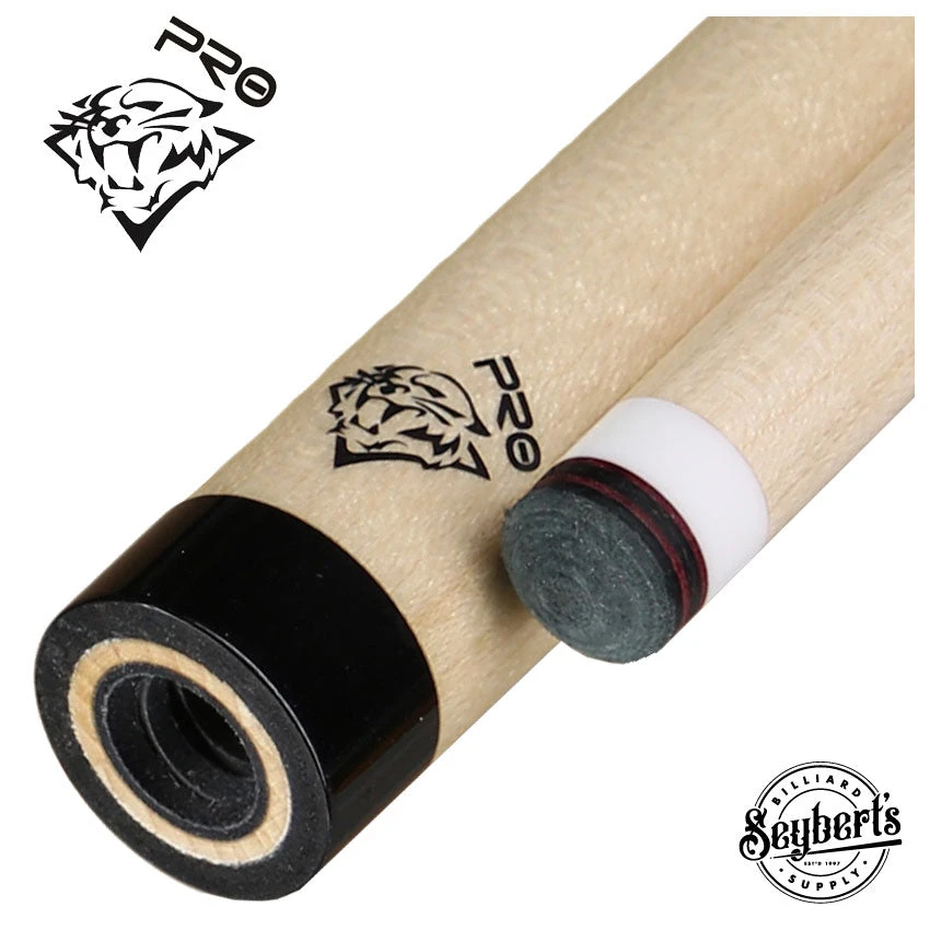 Radial Black Collar  Tiger Pro Shaft 12mm. This is by far the best super low to no deflection shaft in the market today. It is made with the same 5X patented laminated construction and pinpoint balance accuracy and flex point combined with Tiger ‘s European gradual taper. This shaft is the best in its category. If you want the lowest deflection shaft in the world look no further, this is it. Many low deflection shafts move away from all wood construction and insert other materials and just leave hollow inside the front part of the shaft, taking away the solid feel. Tiger Pro shaft is made all solid wood construction and allows the player to gain more natural power, the best possible feel, and superb feedback with lots of added spin and control. This shaft has Tiger ‘s own European gradual taper, 12.00 mm tip size, ¼ Safer-T ferrule, and Onyx-LTD laminated tip.