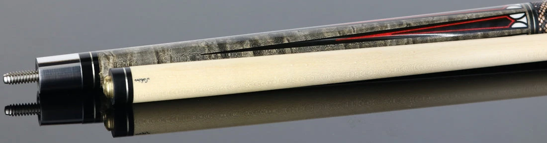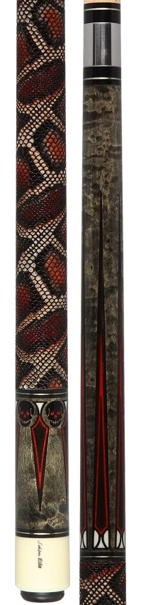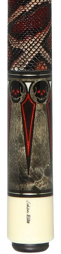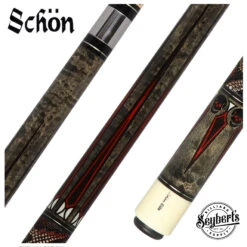Elevate your game with the Schon E2400-3 Elite Pool Cue. The sleek grey stained Curly Maple design features 6 black points and 6 black skulls with red eyes, giving it a sophisticated and exclusive look. The 29″ solid maple shaft and Tiger Everest tip provide precise and powerful shots, while the red and black python embossed leather wrap adds a touch of luxury. Dominate the table in style.