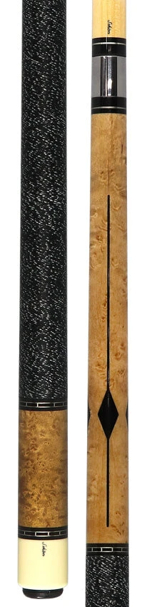 Schon Cues STL2DS has a  dark stained Birdseye Maple forearm with 4 floating ebony inlays with Cocobolo diamonds. Completing the cue is custom Schon rings and black and white Irish linen. Please Note – Stains Color, Inlay Material, and butt cap color may be different than that show. Schon Cues policy is to use a variety of different stains, inlays materials, and butt colors to help ensure the uniqueness of each cue. The actual cue design will remain the same.