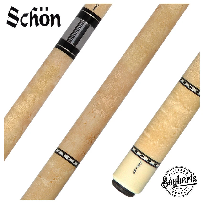 The Schon STL1SPBELS Pool Cue allows you to improve your pool abilities. Made from Light Stained Birdseye Maple with nickel silver and checkered ring decorations, this cue is designed for exceptional performance. The sleek Birdseye Maple butt sleeve and absence of a wrap provide a touch of elegance. It also comes with a 29 inch solid maple shaft for precise shots.