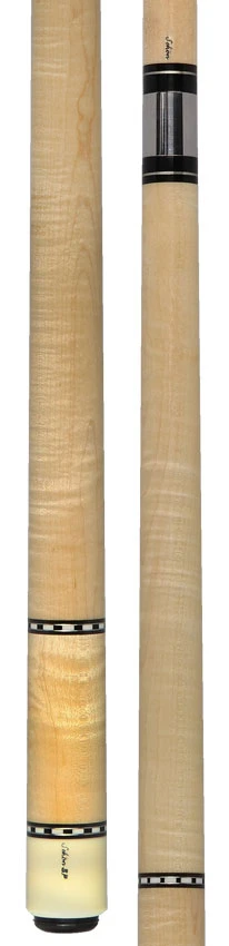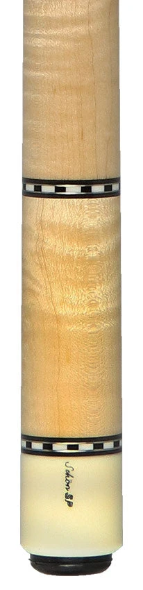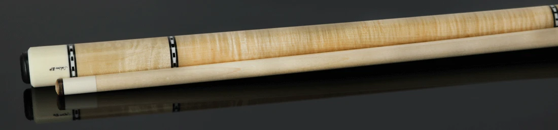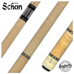 The Schon STL1SPCURLS Pool Cue, crafted with Light Stained Curly Maple, features nickel silver and checkered ring decorations for top-notch performance. Its smooth Curly Maple butt sleeve and lack of a wrap add a touch of sophistication. A 29 inch solid maple shaft ensures precise shots. Improve your pool abilities with this expertly designed cue.