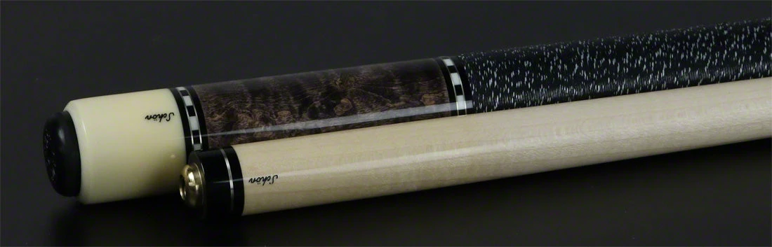 Schon Cues STLGRY Cue has a grey-stained Birdseye maple and is trimmed with nickel silver and checkered rings. Schon Cues come standard with a stainless steel joint and a hard rock maple shaft. Please Note – Stains Color, Inlay Material, and butt cap color may be different than that show. Schon Cue policy is to use a variety of different stains, inlays materials, and butt colors to help ensure the uniqueness of each cue. The actual cue design will remain the same.