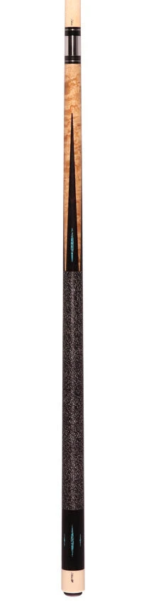 This cue delivers a high-end, elegant presence with its masterful blend of materials and design. The forearm is crafted from striking Birdseye Maple, highlighted by four bold Ebony points, each accented with vivid Turquoise diamond inlays at their base. The Ebony butt sleeve continues the visual theme with a balanced arrangement of four large and four small Turquoise diamond inlays, creating a cohesive and luxurious aesthetic. Paired with a 29″ solid maple shaft, a stainless steel 5/16 x 14″ joint, and a Tiger Everest tip for precision play, the cue is finished with a classic black and white Irish linen wrap—bringing together performance, sophistication, and timeless style.
