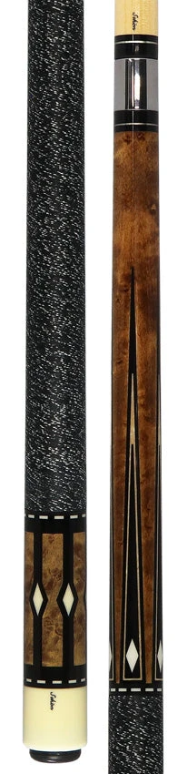 Unleash your daring nature with the Schon Pool Cue – STL8DS. Featuring a dark stained Birdseye Maple design with ebony and maple veneer points and inlaid white diamonds, this cue exudes confidence. The custom rings and black and white Irish linen wrap add the perfect touch of boldness. Please note, each cue is uniquely crafted with different stains, inlays, and butt colors. Step up your game with Schon Cues.