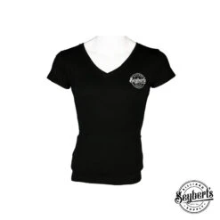 Elevate your fashion game with Seybert’s Woman’s Black V-Neck T-Shirt. Combining style and comfort, this tee features our iconic logo on the front. A must-have addition to any wardrobe, get yours now and enhance your collection!