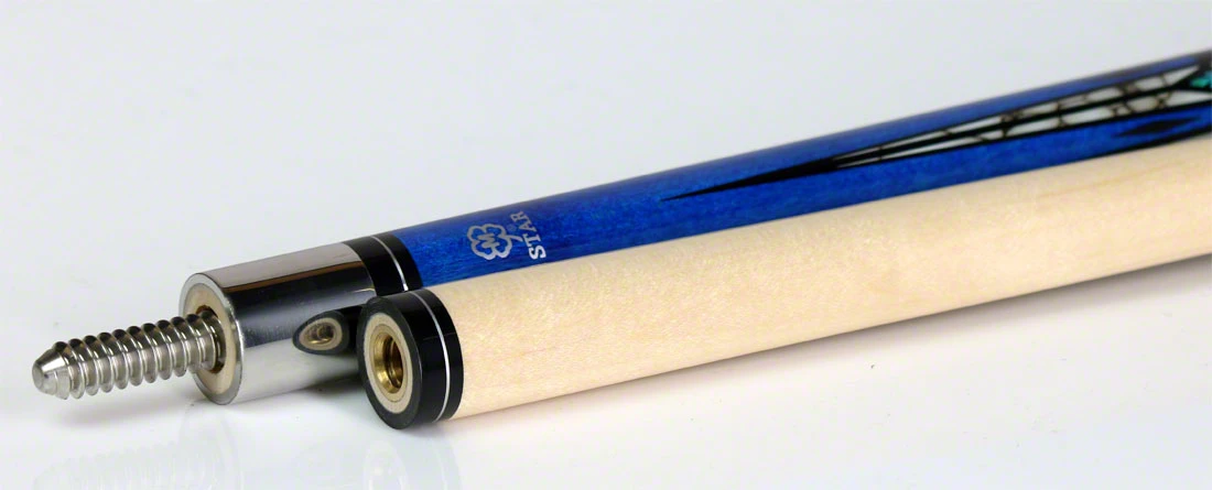 Crafted from premium hardrock maple and adorned with a blue stain, silver rings, and multi-colored overlay points, the Star S85 Play Cue is the perfect addition to any sophisticated collection. An Irish linen wrap and stainless steel joint collar and butt plate provide superior handling and shot-making, while the traditional hardrock maple shaft ensures a consistent, reliable performance. Elegant and precise, this cue is perfect for your next game.