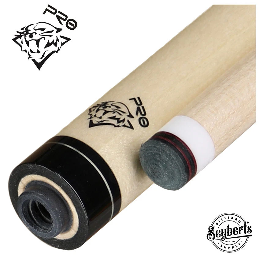 5/16 x 14 Silver Ring Tiger Pro Shaft 12mm. This is by far the best super low to no deflection shaft in the market today. It is made with the same 5X patented laminated construction and pinpoint balance accuracy and flex point combined with Tiger ‘s European gradual taper. This shaft is the best in its category. If you want the lowest deflection shaft in the world look no further, this is it. Many low deflection shafts move away from all wood construction and insert other materials and just leave hollow inside the front part of the shaft, taking away the solid feel. Tiger Pro shaft is made all solid wood construction and allows the player to gain more natural power, the best possible feel, and superb feedback with lots of added spin and control. This shaft has Tiger ‘s own European gradual taper, 12.00 mm tip size, ¼ Safer-T ferrule, and Onyx-LTD laminated tip.