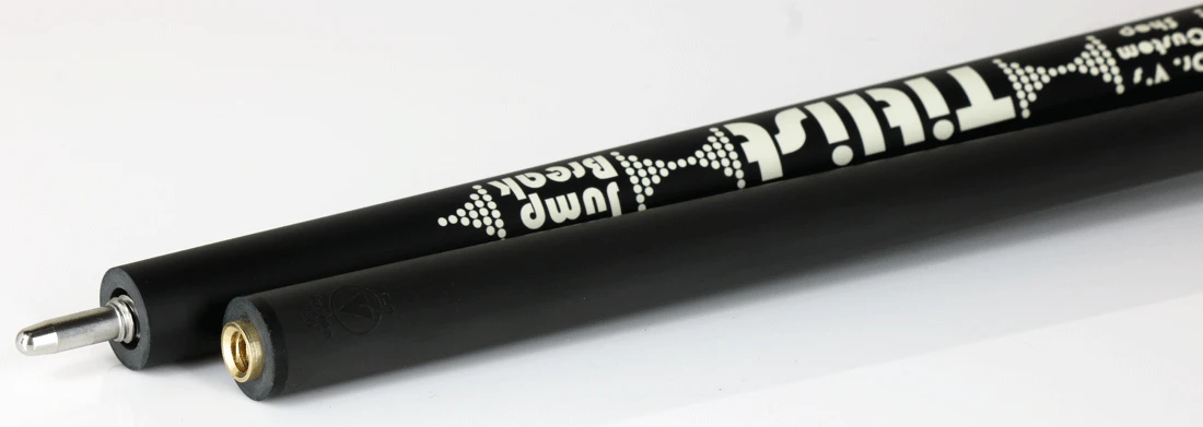 The Titlist Jump/Break is equipped with a 12.9mm carbon fiber shaft, an industrial layered micarta tip, and an optimally balanced 2-piece matte black wood butt setup to maximize performance on both the jump shot and the break shot.