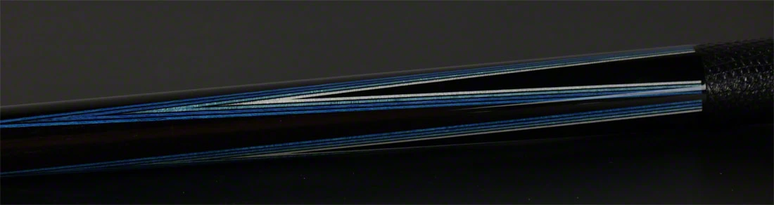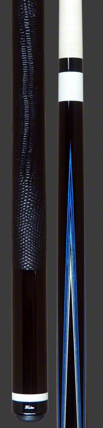 Tonkin Custom 4 Point Ocean Blue Pool Cue. Tonkin Cues uses the most intricate and beautiful wood to create these amazing cues. This cue has an ebony forearm and butt sleeve and four blue, green, and natural points. Completing the cue are two 13mm maple shafts with aegis short ferrules and a Tonkin Black Soft Tip. Completing this cue is a genuine black lizard wrap and custom matching ebony joint protectors.
