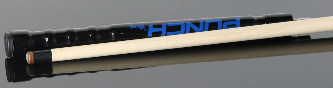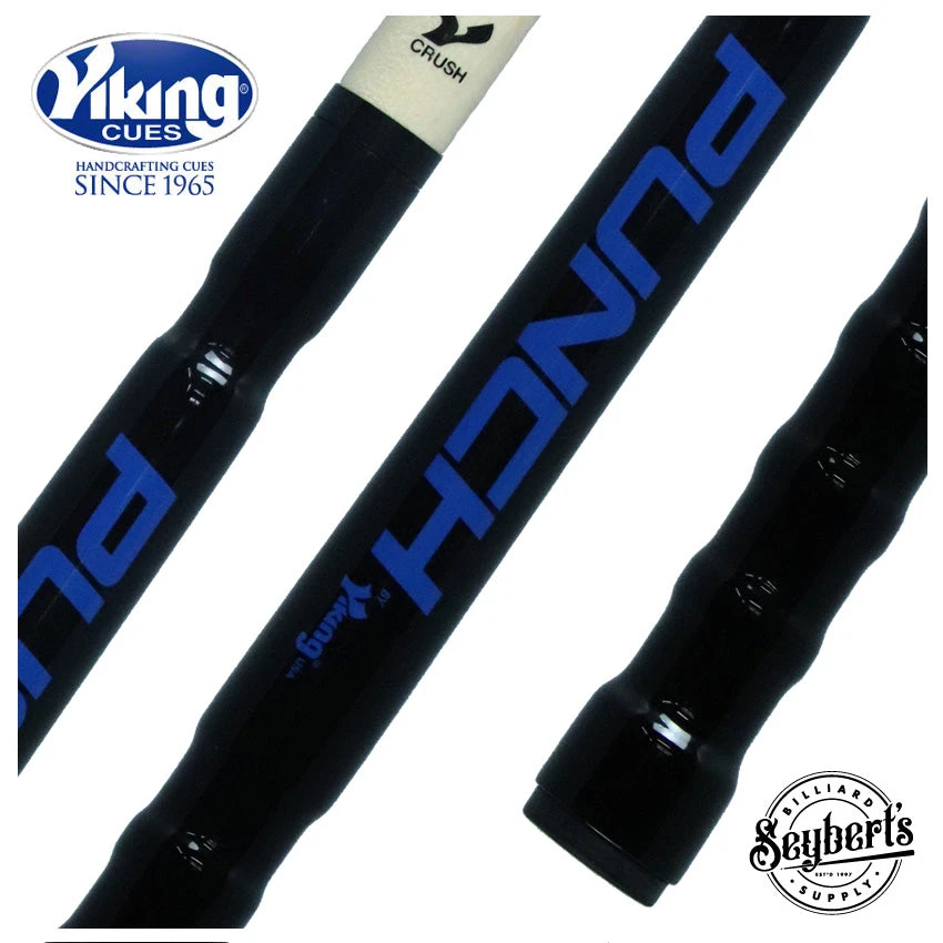 Viking Punch jump cue is 41″ long and has the Crush strong taper shaft. The handle has balance point finger grove to help with those tight shots along with grooved back to assist with long shots. Handle is gloss black with new bold blue color Punch Logo.