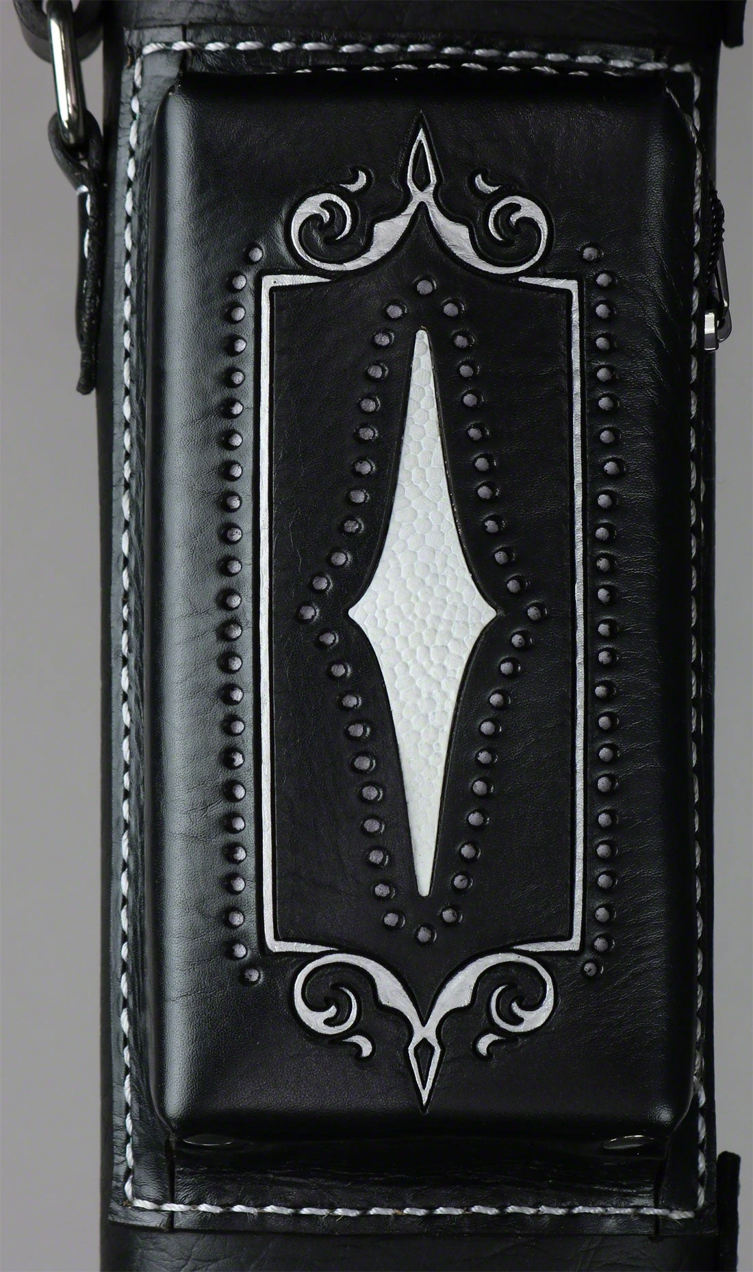 The Volturi Custom Black on Black cue case is made of authentic Veg-tan elephant leather hand-crafted to perfection. The case also has stingray filigree and stingray inlays. With Volturi cases, you don’t have to be a champion to feel like a champion.